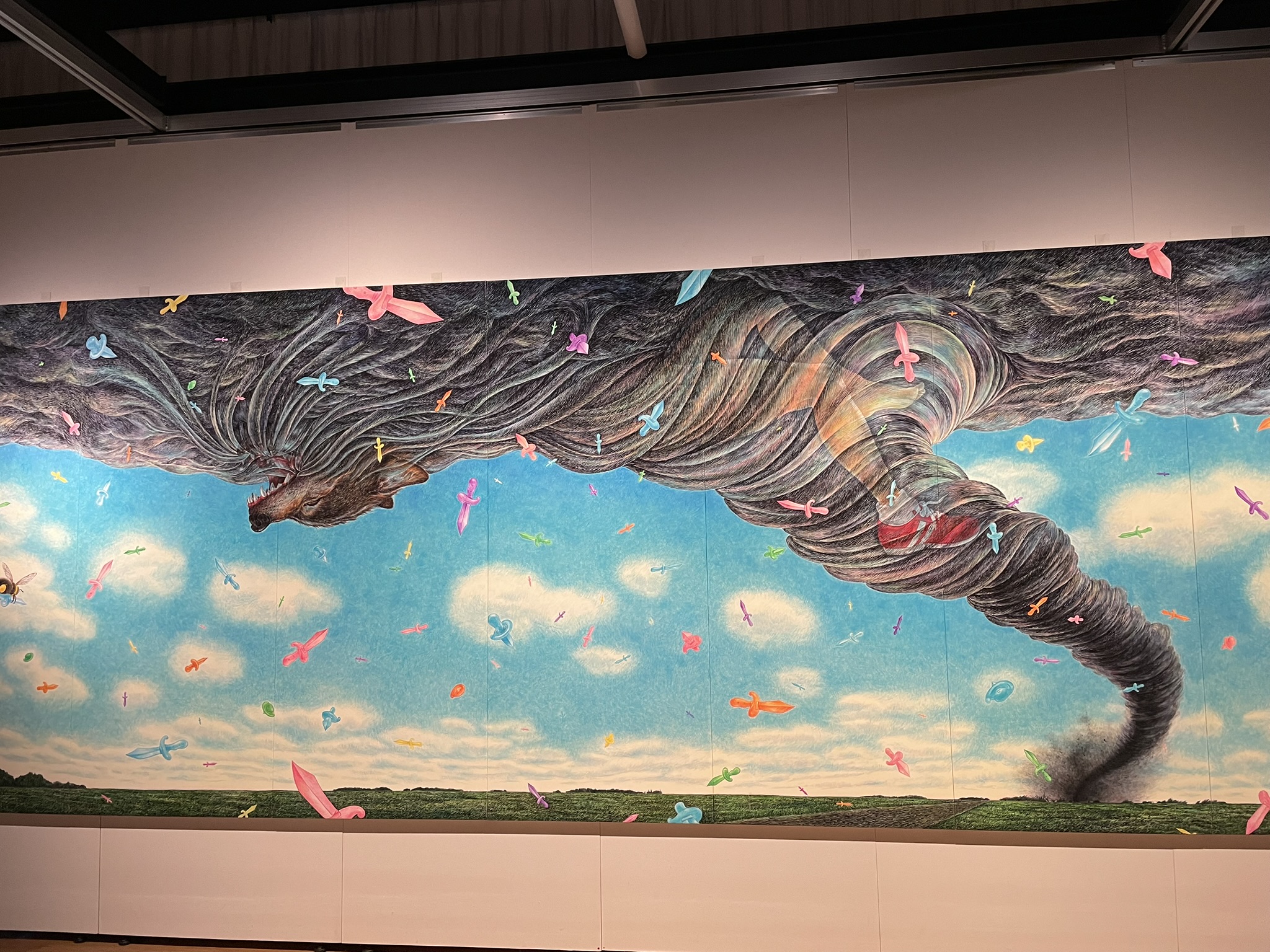 鴻池朋子「第2章 巨人」。黒い竜巻に不穏な空気がある。