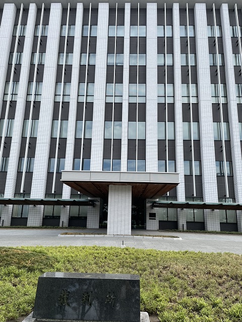 建築中はこの空地にプレハブ庁舎が建ってたらしい。検察は裁判所の裏で、暑かったので見に行かなかった。右写真左奥にうっすら写っているらしい…