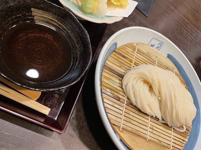 お昼は西武秋田店にある「佐藤養助 秋田店」で稲庭うどん。暖かいのも冷たいのも両方楽しめる欲張りなセットがあり美味しい。