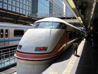 ↑このホームからは成田エクスプレスも発着する。 ↑今回乗った東武スペーシア