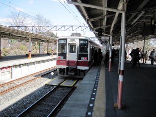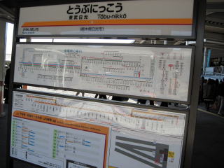 撮影していると我々の乗るスペーシアきぬがわ3号が入線。Yとともに撮影し合う。休日なので子連れの客が多い。もちろんこういうときは子供最優先で、我々「大きな子供たち」は控えめにする。そうこうしていると私のデジカメの電池が切れた。ホーム後方のキオスクに行くが単三電池は扱っていないとのこと。仕方なく日光で仕入れることにして、スペーシアに乗り込む。