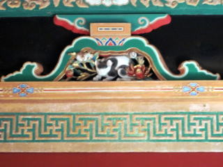 ←公墓所への入り口の門の欄間にある眠猫。この墓所のマスコットのような存在になっており、彼(彼女かもw)を模したお守りが売っていた。かわいいからついつい買ってしまったではないか!
