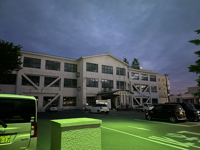 歩いて帰る途中に新庄市役所も見れた。電気ついてないけどなんでこんなに車停まってるんすかね…