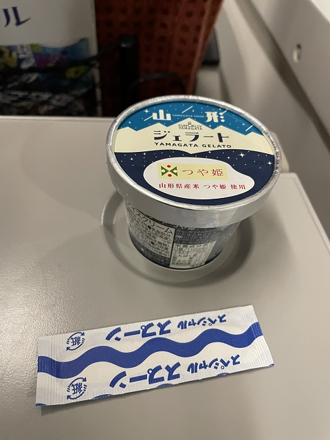 E3つばさで福島に向かう。つや姫のお米を使ったアイスは美味しかった。