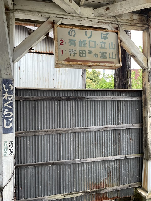 立山から戻り岩峅寺(いわくらじ)駅で不二越・上滝線に乗り換える。接続待ちの間に昭和レトロの駅舎を愛でる。